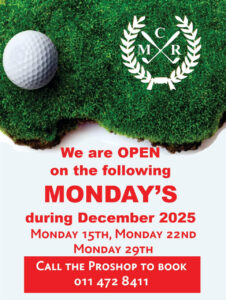 Calendar Update – please add Mondays to your golfing calendar in December. Avoid disappointment and book today.